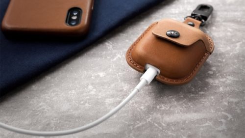フルグレインレザー素材を使った、AirPodsに付属している充電ケースを収納するケースです。