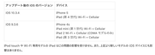 現在、これらのiPhone/iPadを使っているユーザーは早めにアップデートを行うことが推奨されています。