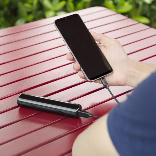 「PB-N55」は、持ち運びがしやすい、180グラムのスリムな円柱形の7000mAhモバイルバッテリーです。