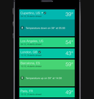 世界各地の天気予想情報を表示する,iPhoneアプリ「Alertic」が無料