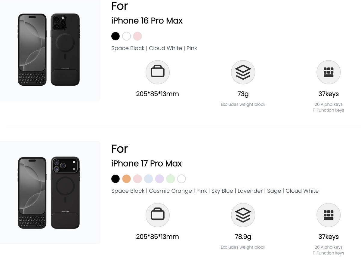 iPhoneを含むスマートフォン用のハードウェア・キーボードケースを販売しているClicksもiPhone 17用を準備中です。