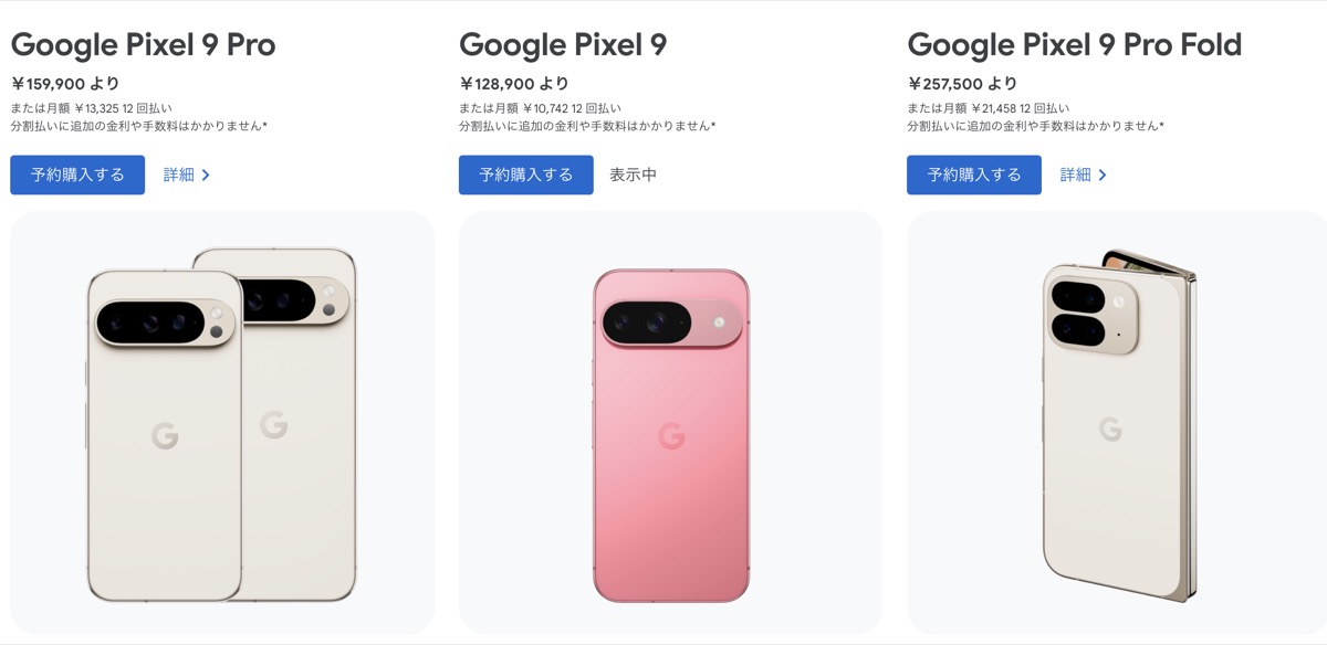 新しいGoogle PixelはスタンダードモデルのPixel 9、プロモデルのPixel 9 Pro、折りたたみのPixel 9 Pro Foldの3タイプ。