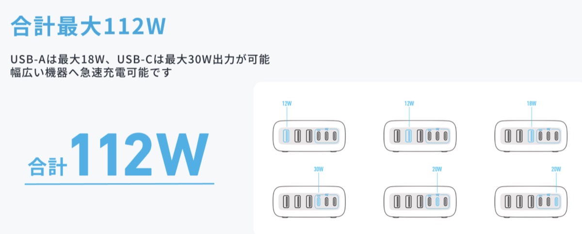 ・USB-Aポートは12W x 2、18W出力