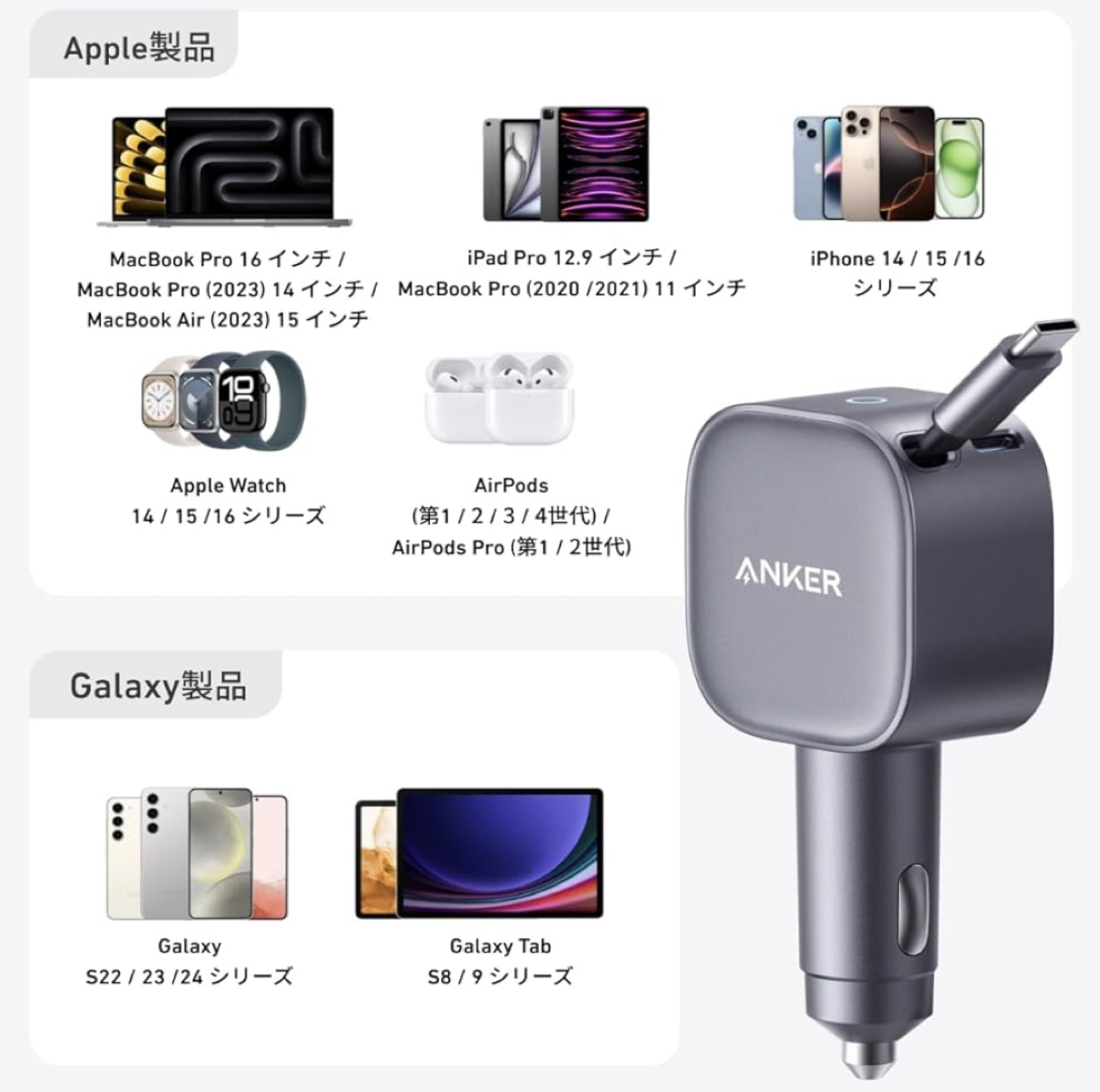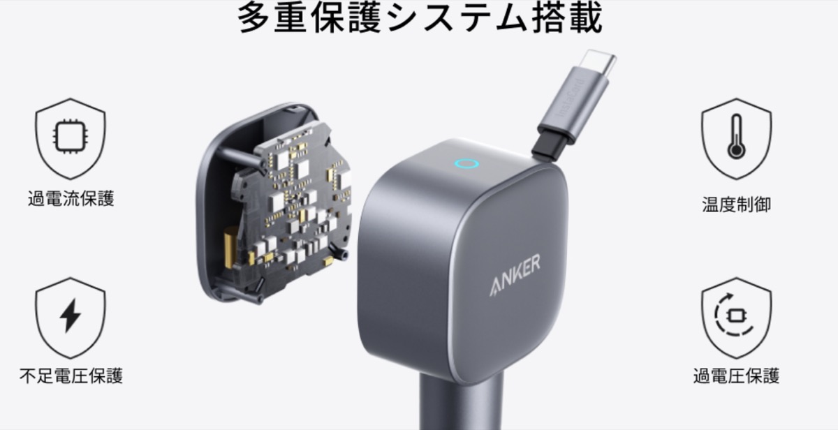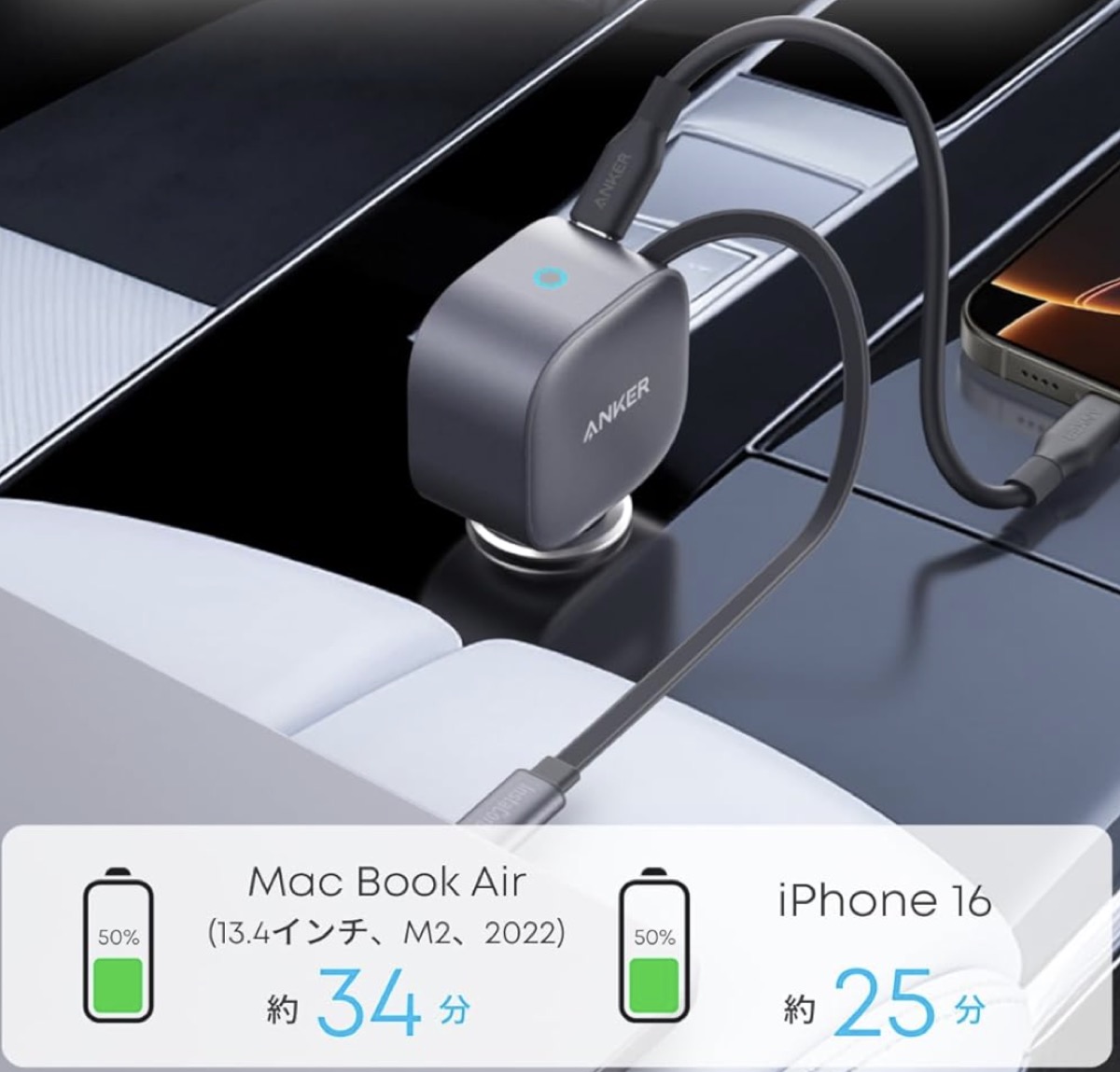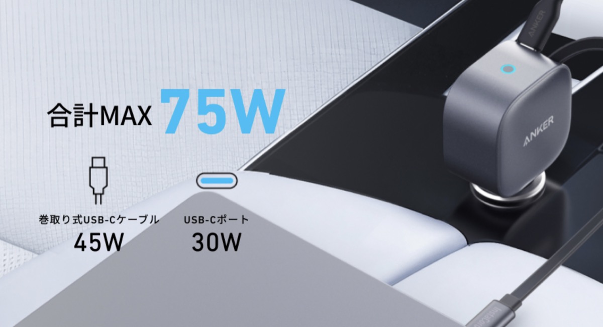 Ankerから「Anker Nano Car Charger (75W, 巻取り式 USB-Cケーブル)」。