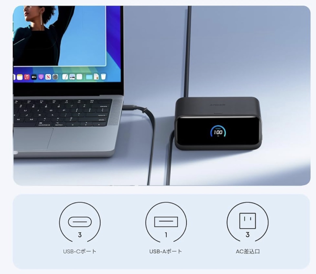AC差し込み口、巻取り式USB-Cケーブル、最大100W出力の「Anker Nano Charging Station」が発売[限定数20%オフ]