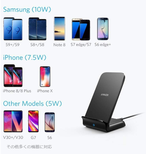 その他のQiワイアレス充電対応機器では5W出力での充電を行うことができます。
