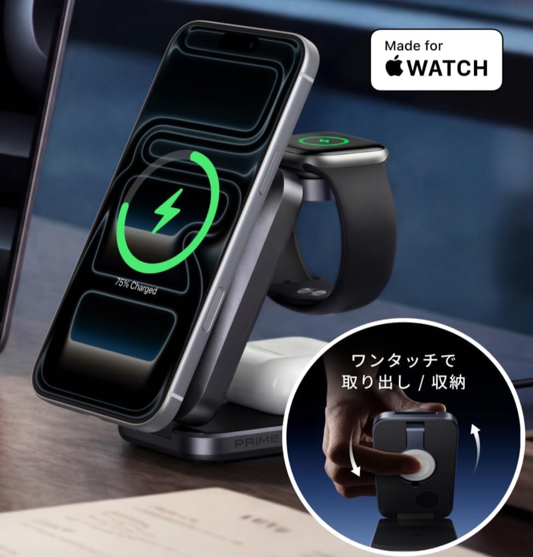 - 同時充電:iPhone(最大25W)+ Apple Watch(Fast Charge対応)+ AirPods(5W)