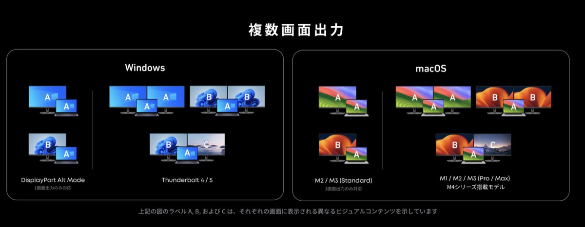 最大120Gbpsのデータ転送速度、DisplayPort 2.1ビデオ出力、最大240Wの充電に対応していて、もちろん、Thunderbolt 3やThunderbolt 4と下位互換性あり。