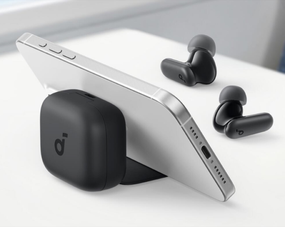 IP54の防水防塵設計、充電ケースはスマホスタンド付き。