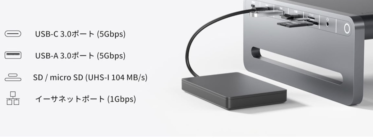 PD85W、4K 60HzのHDMIなどを備える「Anker USB-C ハブ (10-in-1)」モニタースタンド