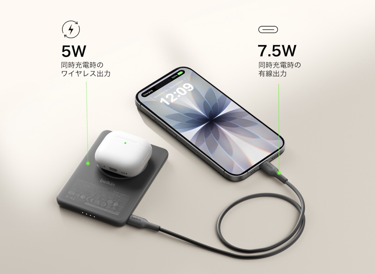 MagSafe対応モバイルバッテリーは近年増えていますが、Belkinの新モデルは「超薄型カードサイズ」、2台同時充電、パススルー対応がアピールポイントですね。