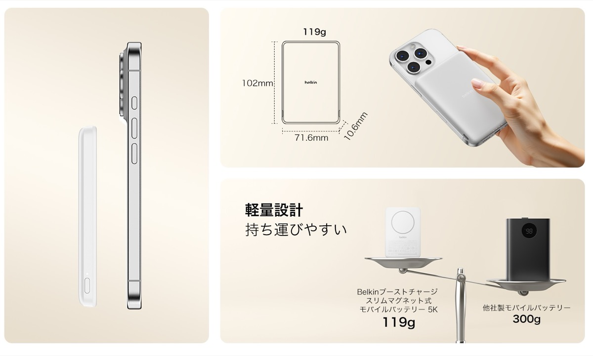 Belkin、カードサイズの超薄型MagSafeバッテリー「BoostCharge 5K」を発売