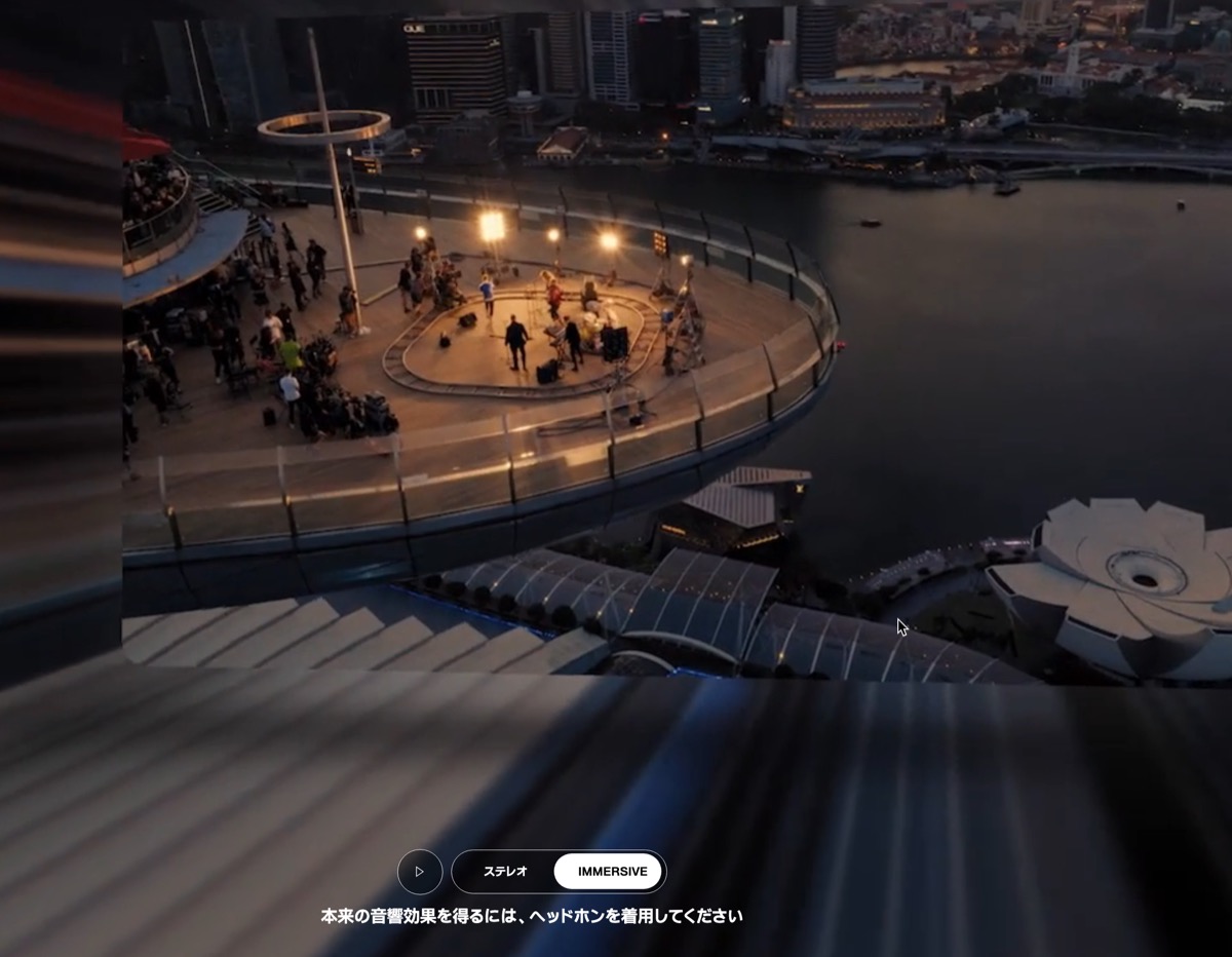 Immersive Audioって、どんなもの?というのが気になりますが、製品ページ上で通常のステレオ音源と聴き比べ可能になっています。