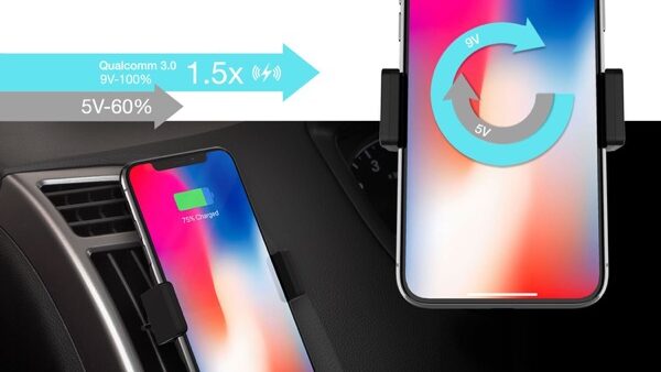 車内エアコン吹き出し口に設置する、急速充電対応の「Patchworks CAMO Wireless Charging Car Mount」