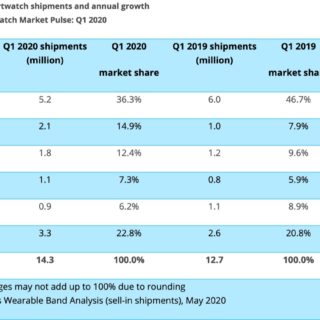 Canalysが、2020年第一四半期におけるグローバル・スマートウォッチ市場動向のレポート...
