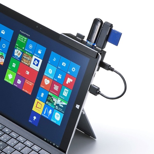 サンワサプライが,タブレット用USBハブ「USB-2H302BK」、USBハブ付きカードリー...