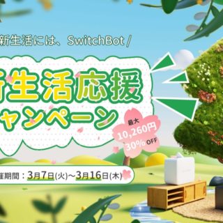 SwitchBotが、3/16まで「新生活応援キャンペーン」を開催ちう。 SwitchBot...