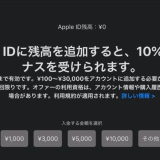 iTunesストア/Appストアで、Apple IDに直接入金する場合に10%ボーナスが付与...