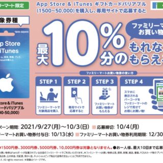 ファミリーマートが、iTunesギフトカードを購入すると10%分のボーナスがもらえる App...