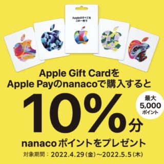 [5/6まで]Apple Gift CardをApple Pay nanacoで購入で10%ポイントバックのキャンペーン
