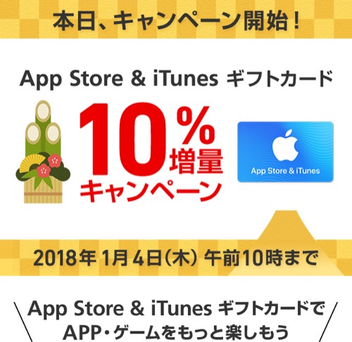 ソフトバンク・オンラインで,2018年1月4日(木)10時までの期間限定で,iTunesコー...