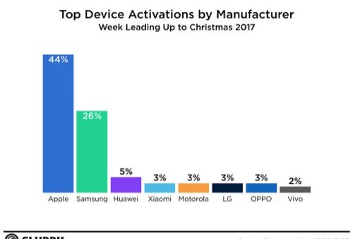 スマートフォン タブレット Flurry Analytics:2017クリスマスウィークの勝者はApple。スマートフォン/タブレットの44%を占め「引き続き支配的ポジションにいる」 2017年12月29日