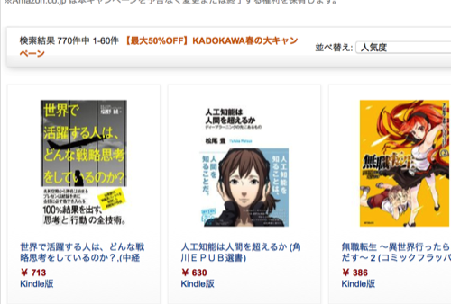 Kindle本:KADOKAWA春の大キャンペーンセール
