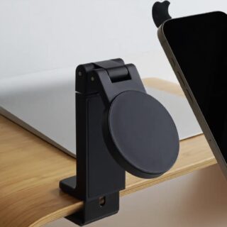 オウルテックから、MagSafe対応クランプスタンド「OWL-STD13-BK」。 側面にシ...