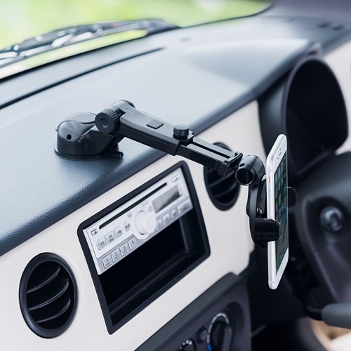サンワサプライが,視界を遮らない下向き設置が可能な車載用スマートフォンホルダー「200-CA...