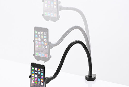 iPhone/Android対応の「USB充電システム搭載クリップ式フレキシブルアーム」が発売