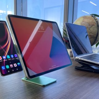iPhoneも並べて設置できるiPadマグネットスタンド。しかも、USB-Cハブ内蔵。これは...