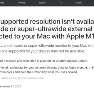 Apple、M1での外部ディスプレイ解像度が利用できない問題は将来のアップデートで解消予定とアナウンス