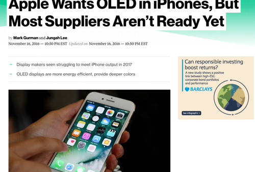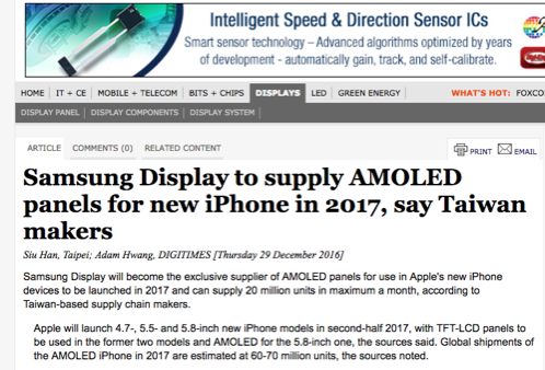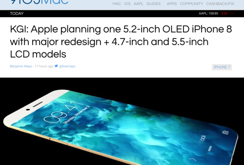 Apple iPhone 8 KGI Securities:OLEDスクリーン搭載iPhoneは5.2インチ。4.7インチ,5.5インチモデルとあわせ3ラインナップになるとの予想 2016年11月19日