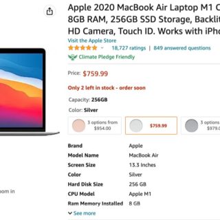 あくまでも参考値ですが、先週末にAmazon USで、2022 MacBook Air La...