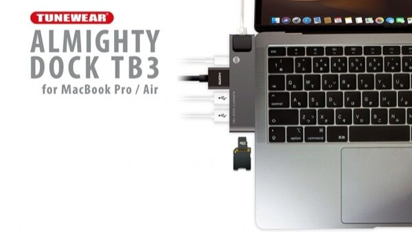 MacBook Air MacBook Pro MacBook Pro/Airに最適化された、ユニボディのUSB-Cハブ「TUNEWEAR ALMIGHTY DOCK TB3 for Macbook Pro/Air」出荷開始 2018年12月25日
