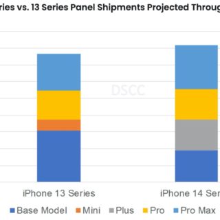 DSCCによるiPhone 13とiPhone 14の出荷数比較。 DSCCは、毎月、スマー...