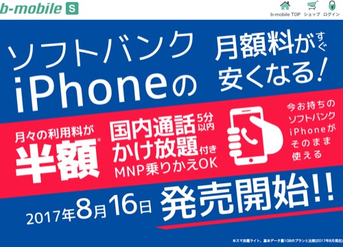 日本通信が,「b-mobile S スマホ電話SIM」を8/16 10時に提供を開始するとア...