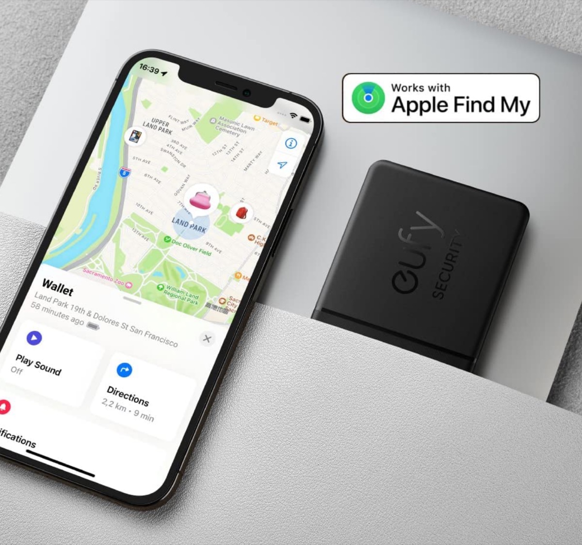 iPhoneだけでなく、Appleデバイスの「探す」アプリで見つけることができますが、Androidデバイスの場合にはEufy Securityアプリが利用可能で、この場合は機能が制限されます。