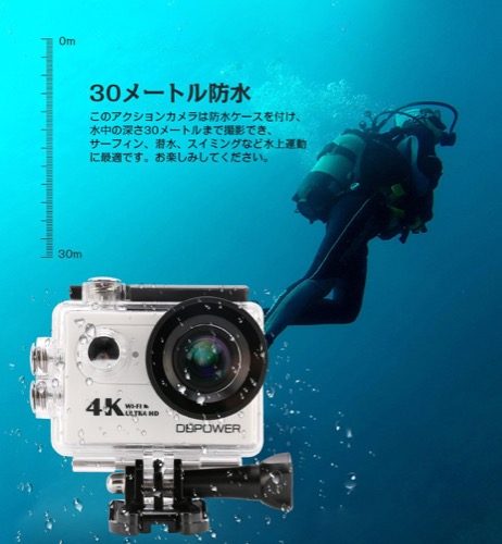 DBPOWERが,4Kアクションカメラ「B076BC8G4T」ホワイトバージョンを発売しています。7,080円です。