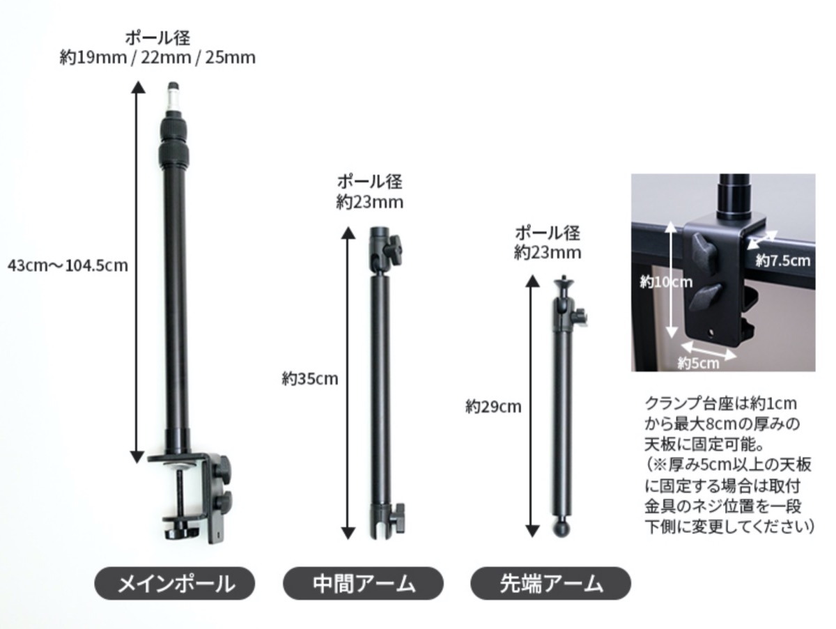上海問屋が、撮影用デスクマウントポールスタンド「DN-916168」を発売。4,980円。