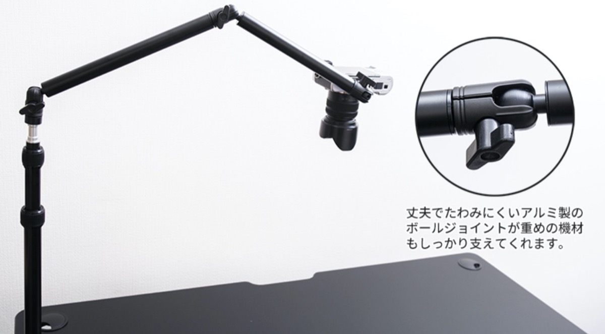デスク上においたアイテムを俯瞰撮影するアーム。