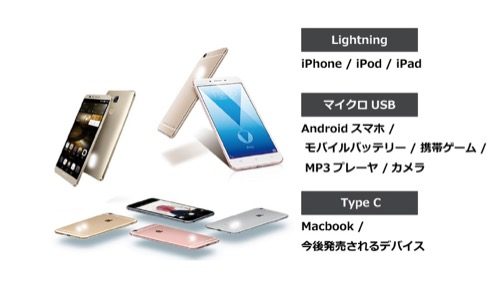 コネクタを無くさずに使えるスライドレール式アルミコネクターで、ケーブルはねじれに強いフラットタイプで、高耐久性TPE材質を採用しています。