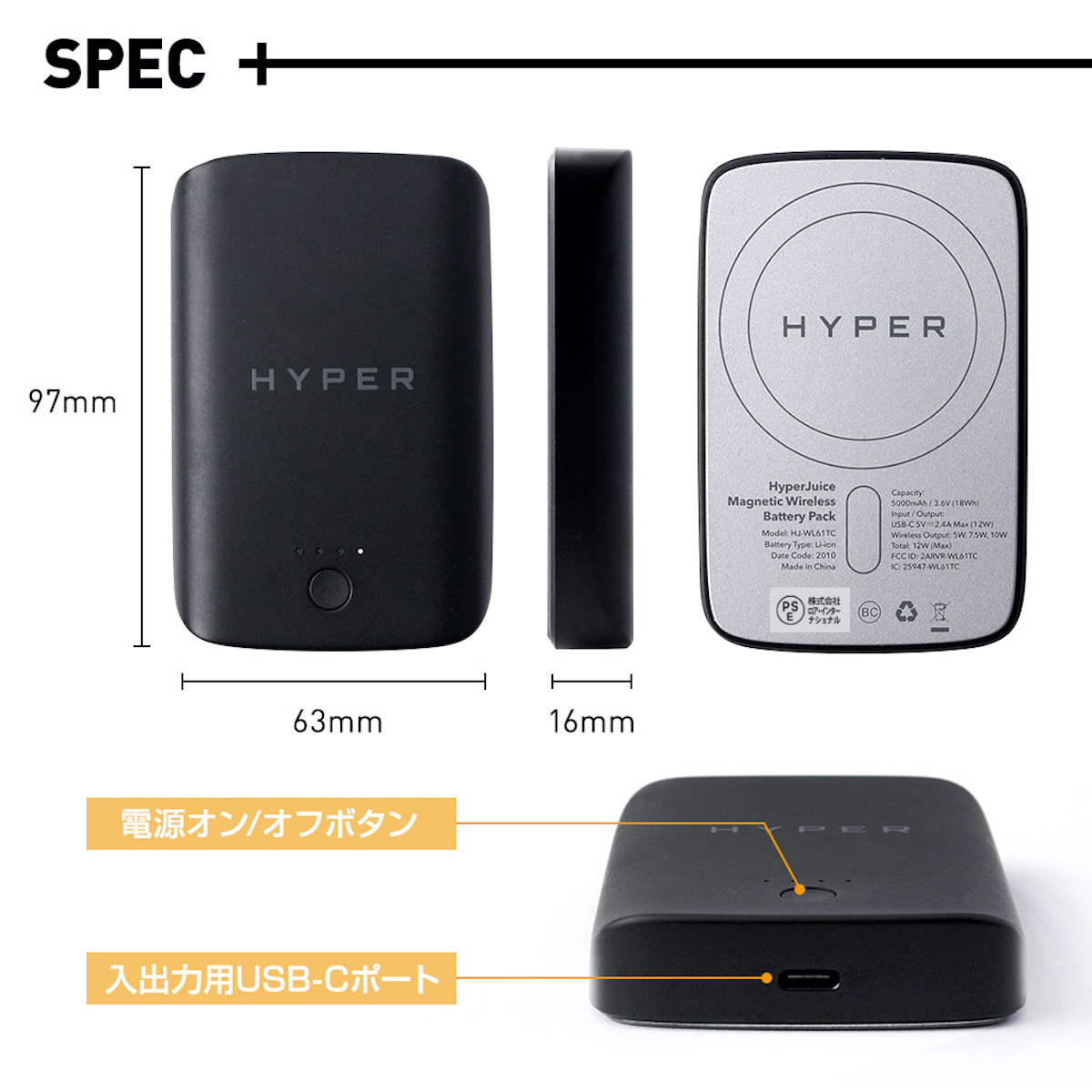 HyperJuice マグネット式ワイヤレスモバイルバッテリー