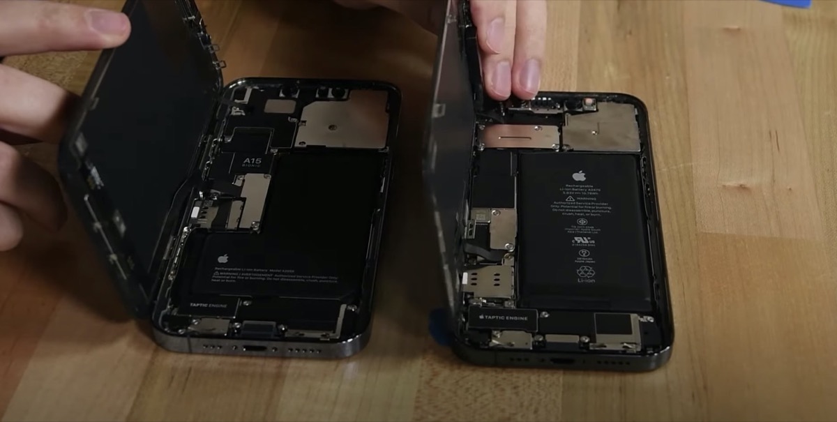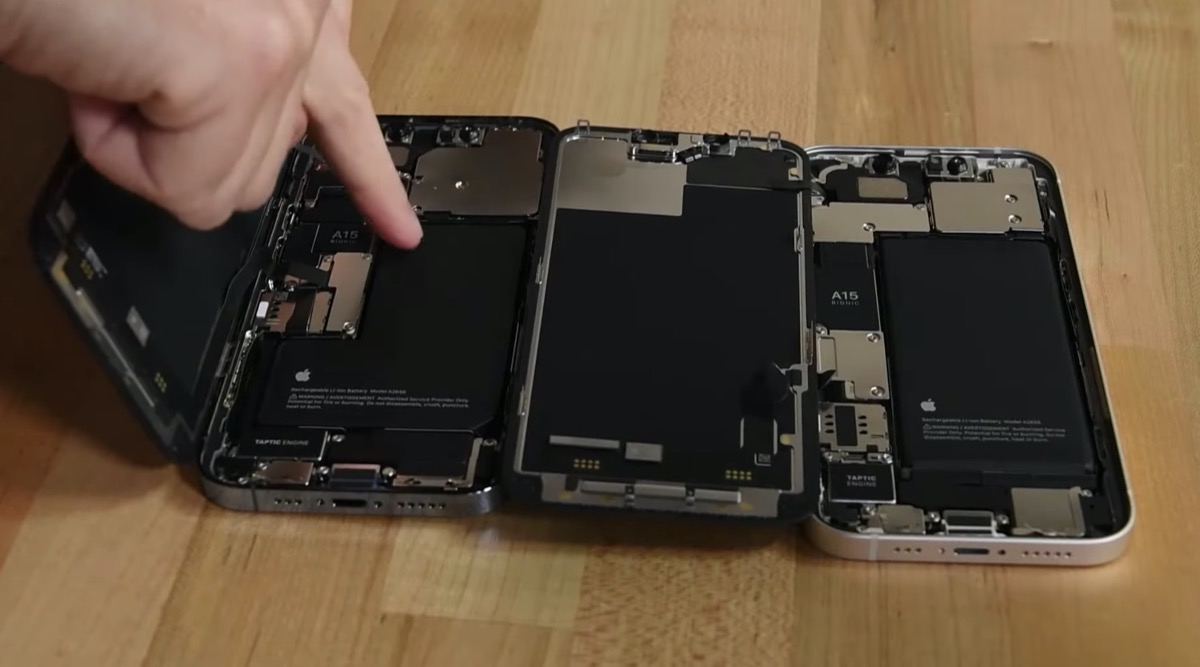今年のiPhone 13シリーズは、去年のiPhone 12シリーズと見た目的には、ノッチの幅とカメラの大型化以外はほぼ同じですが、内部構造的には非常に変化があるのがわかります。