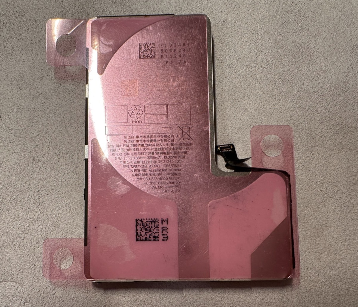 Battery of early stage iPhone 16 Pro Proto