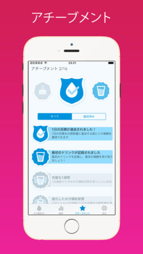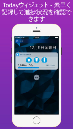 1タップで摂取水量を記録,トラッキングする事が出来ます。