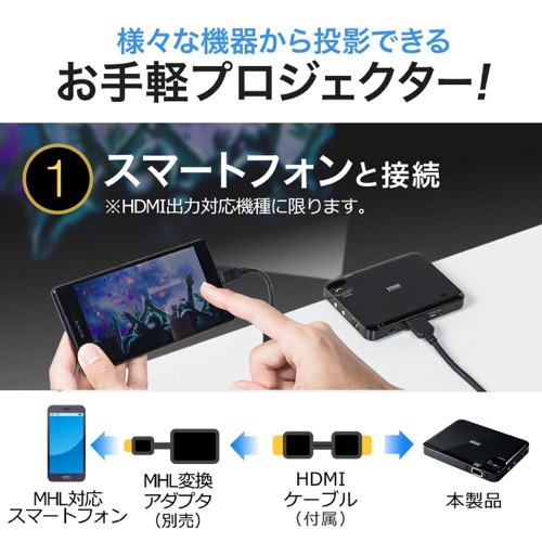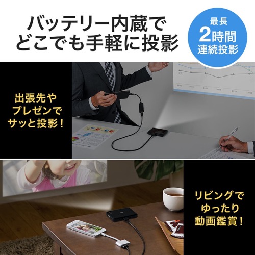 「400-PRJ023」は、手のひらサイズで持ち運びしやすいモバイルプロジェクターです。