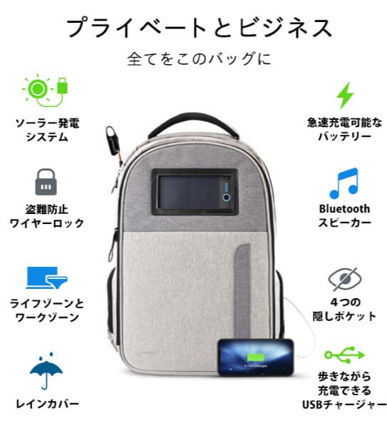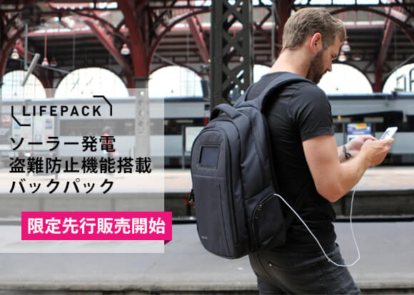 ソーラー充電/モバイルバッテリー/盗難防止機能など11種類の機能を備えるバックパック「LIFEPACK」先行販売開始