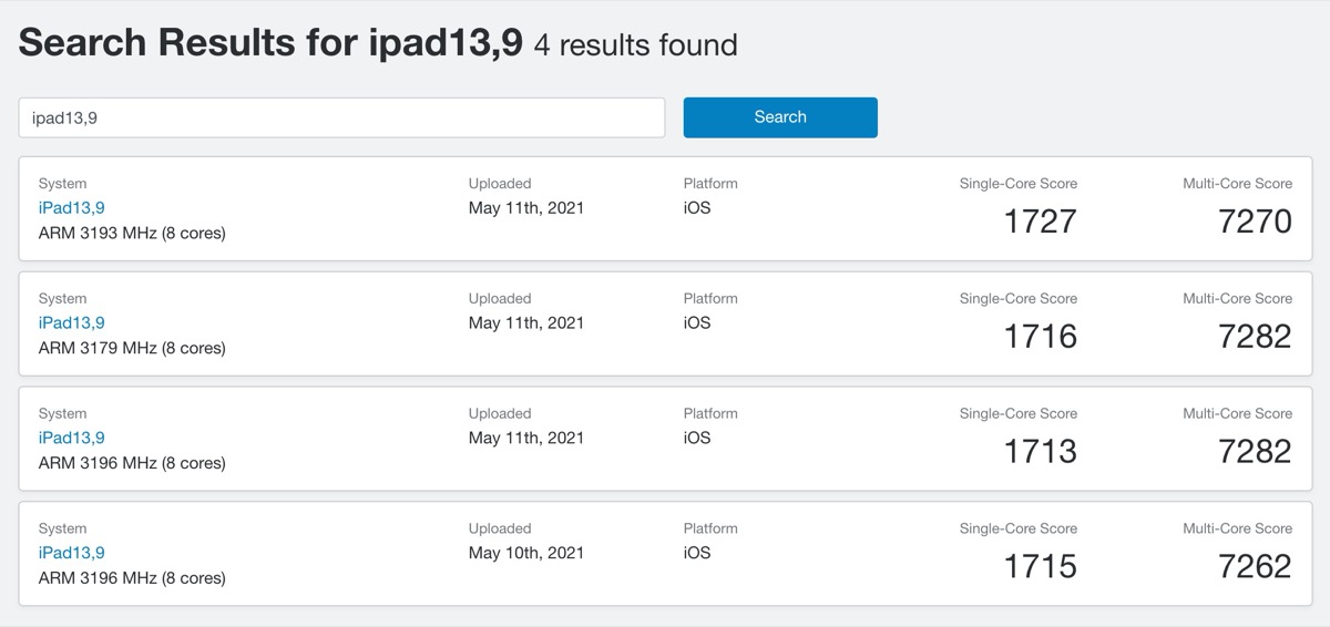 Geekbench 5に、M1搭載iPad Pro 12.9インチのベンチマークが登録。