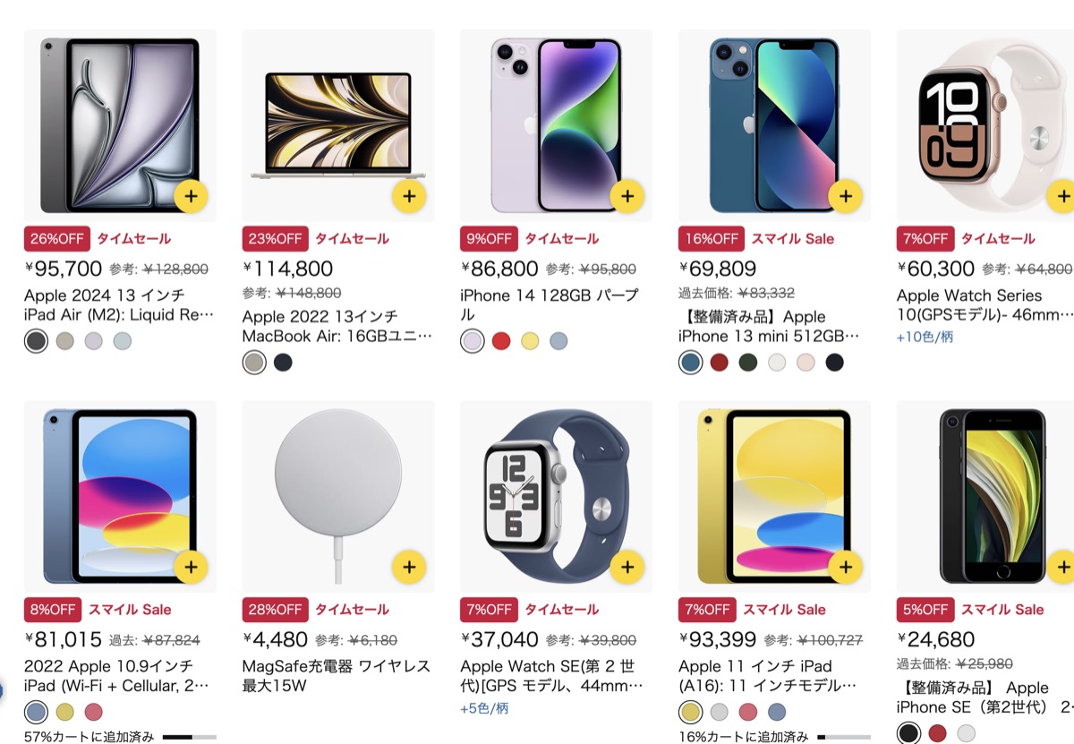 このほか、今回のAmazonセールで対象になっているApple製品は: